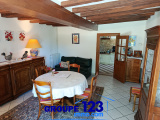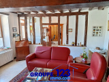 Maison composée d'une entrée, d'un salon de presque 24 m² avec ses colombages et sa cheminée insert. Salle à manger de presque 20 m² entre la cuisine et le salon, ouverte sur la terrasse et le magnifique jardin.