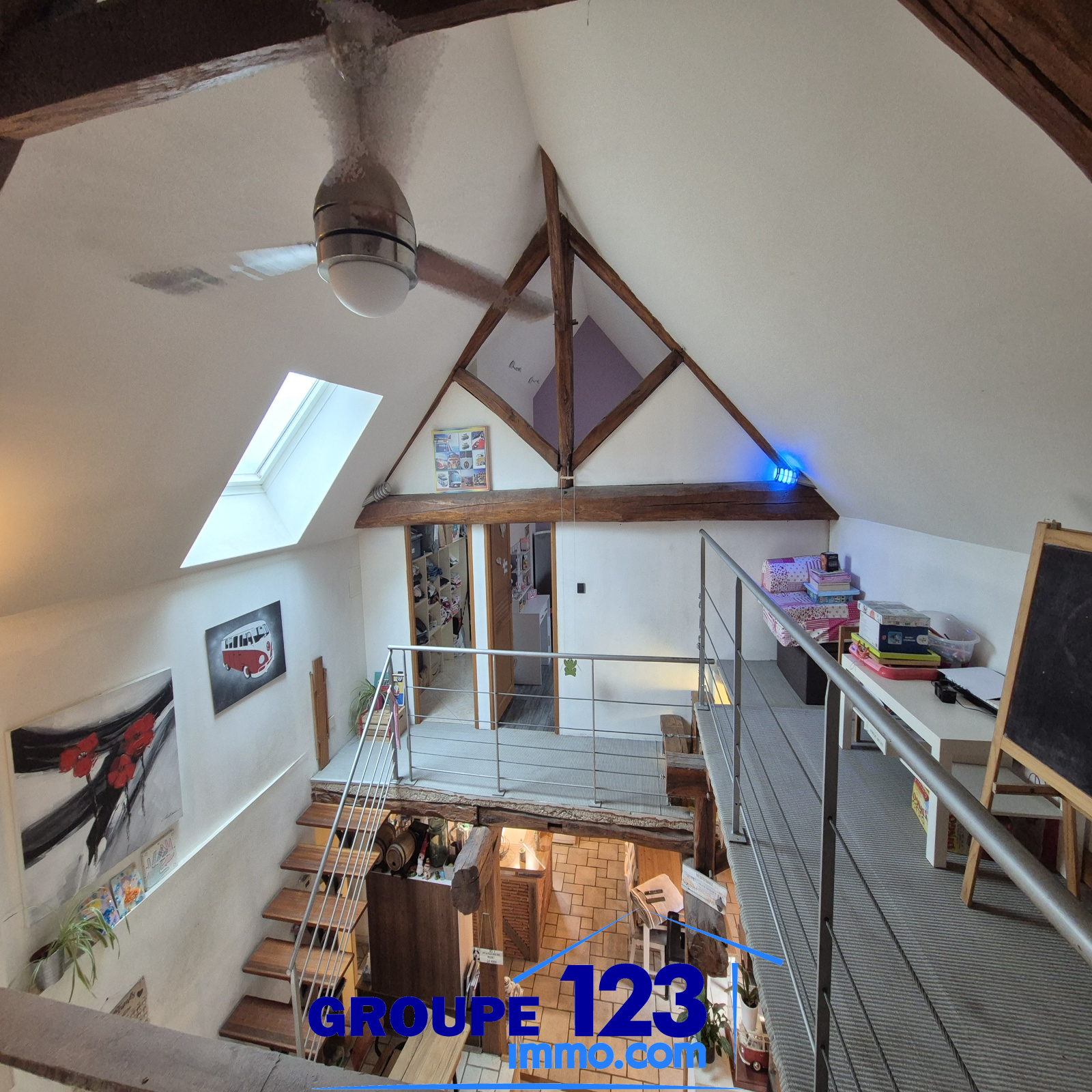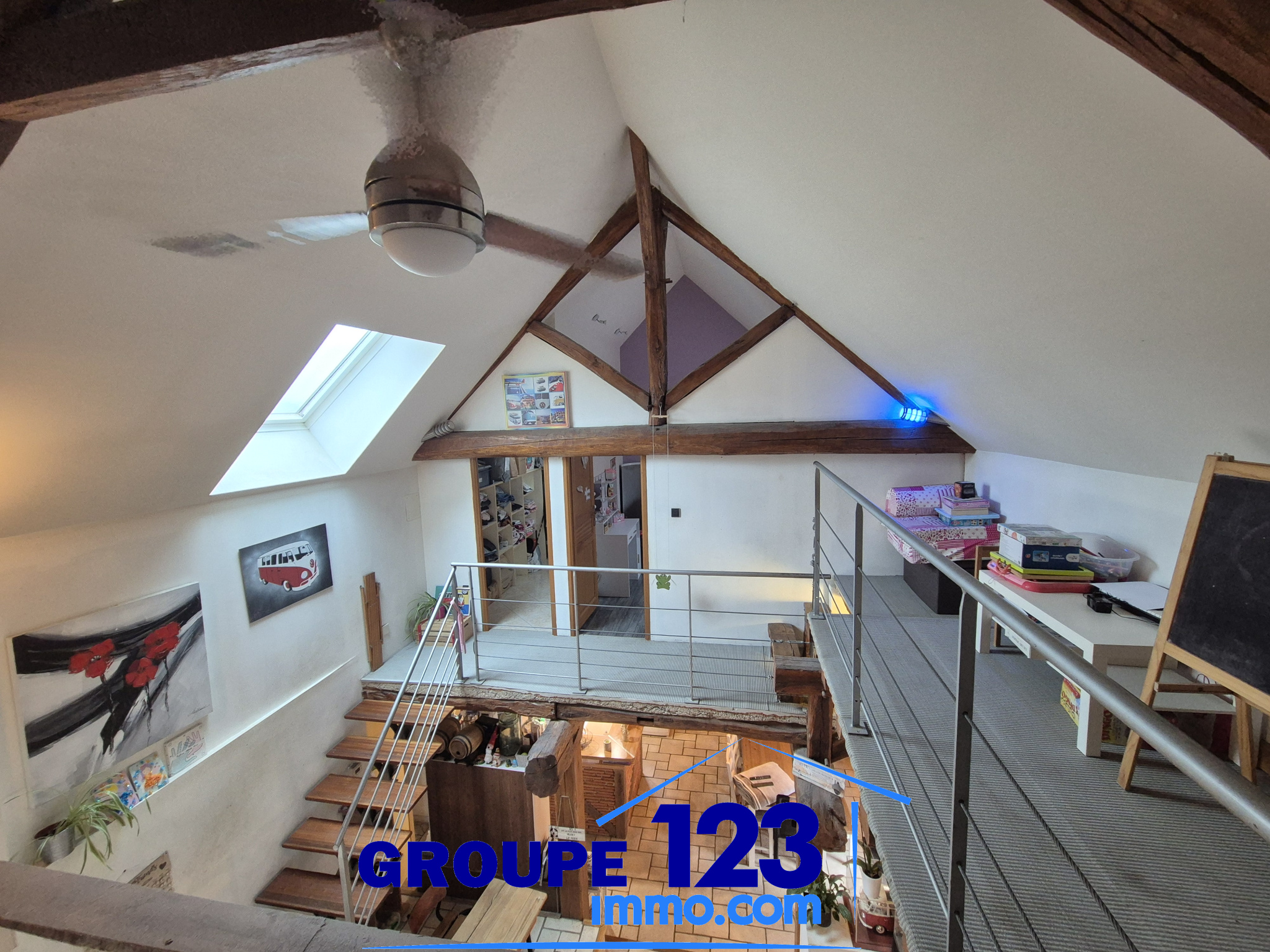 À l'étage, une mezzanine dessert deux chambres et un dressing.