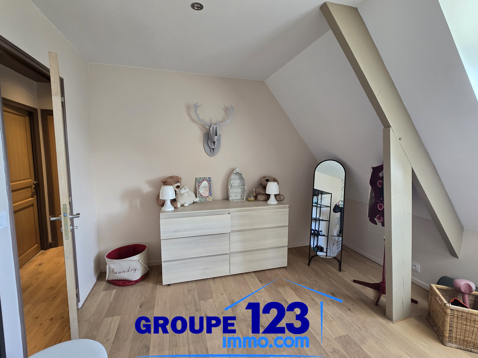 À l’étage, l’espace nuit se compose de trois chambres, dont une suite parentale avec espace dressing, complétée par une salle d’eau et un toilette indépendant, garantissant confort et intimité à chaque occupant.